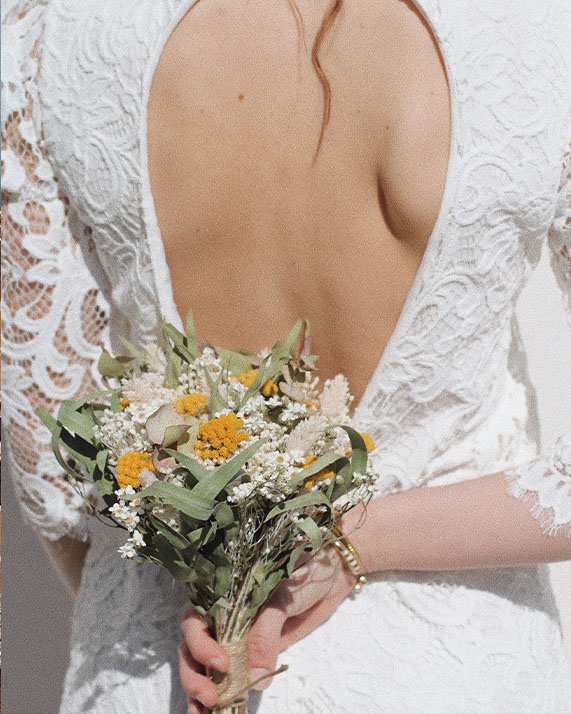 Rosa Cadaqués s’unit à Olympe Mariage le temps d’une collaboration. Olympe Mariage, spécialiste des robes de mariée, réinvente au quotidien la mariée chic. Nous avons imaginé une collection d’accessoires en fleurs séchées pour vous accompagner le jour de votre mariage: un bouquet de mariée en fleurs séchées, un peigne et une boutonnière. Un esprit profondément champêtre pour une collection empreinte du sud. Des touches de jaune lumineux, de l’eucalyptus du Roussillon et la délicatesse de l’ixodia.